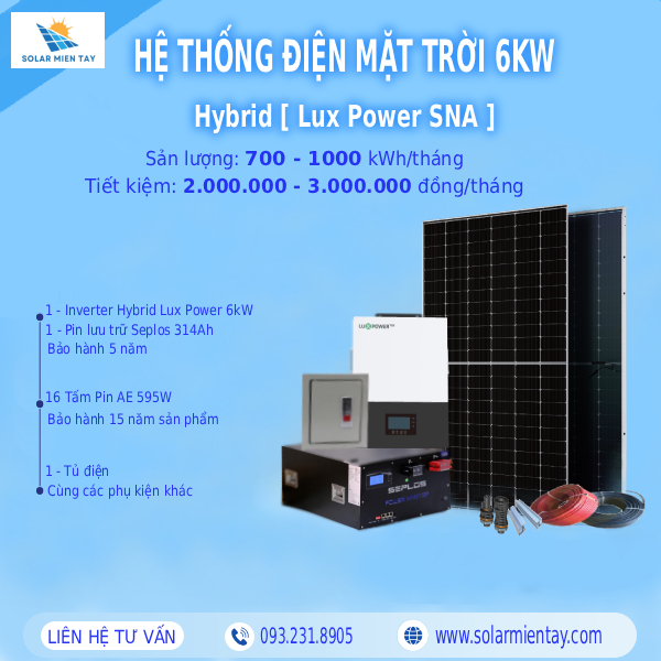 Hãy liên hệ ngay với Solar Miền Tây, để nhận tư vấn và báo giá chi tiết về hệ thống điện mặt trời 6kW Hybrid [Lux Power], giúp bạn tối ưu chi phí điện năng và chủ động nguồn điện bền vững!