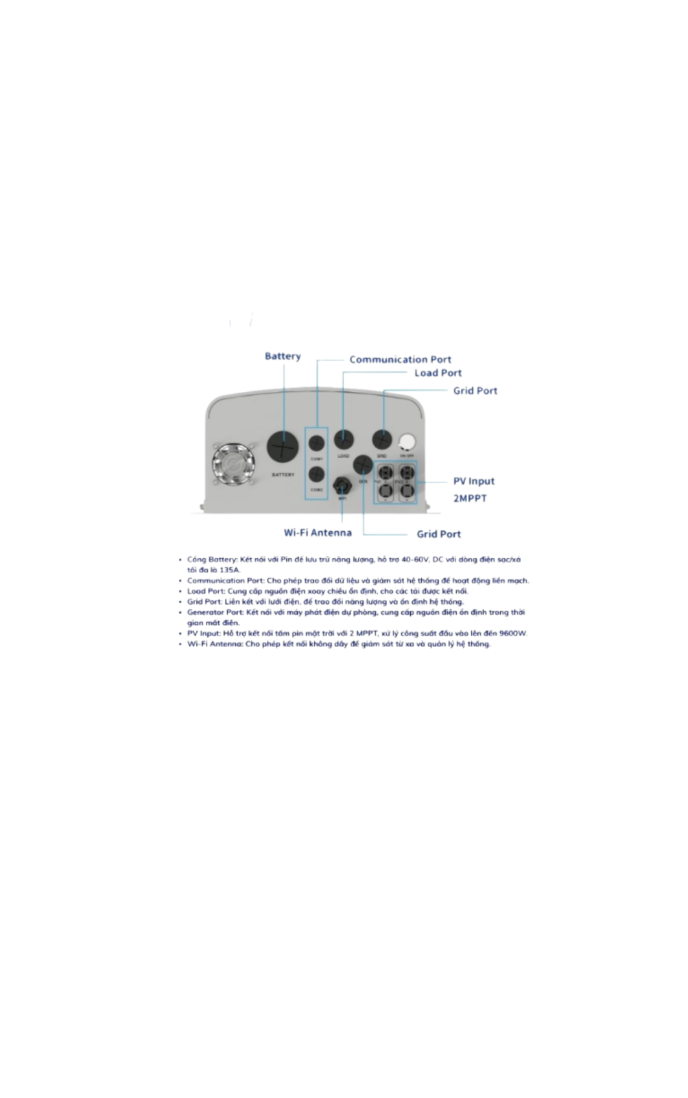Công suất đầu vào PV tối đa (V): 9.600